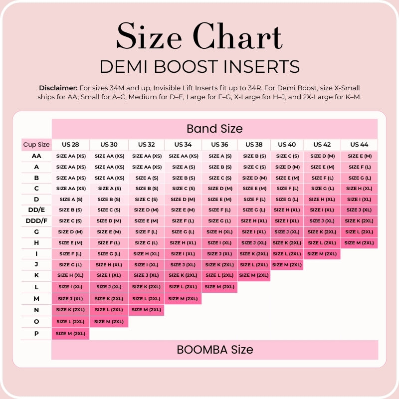 Unsure of your bra size? Input your band and cup size below to get your LOVEBOOMBA size!